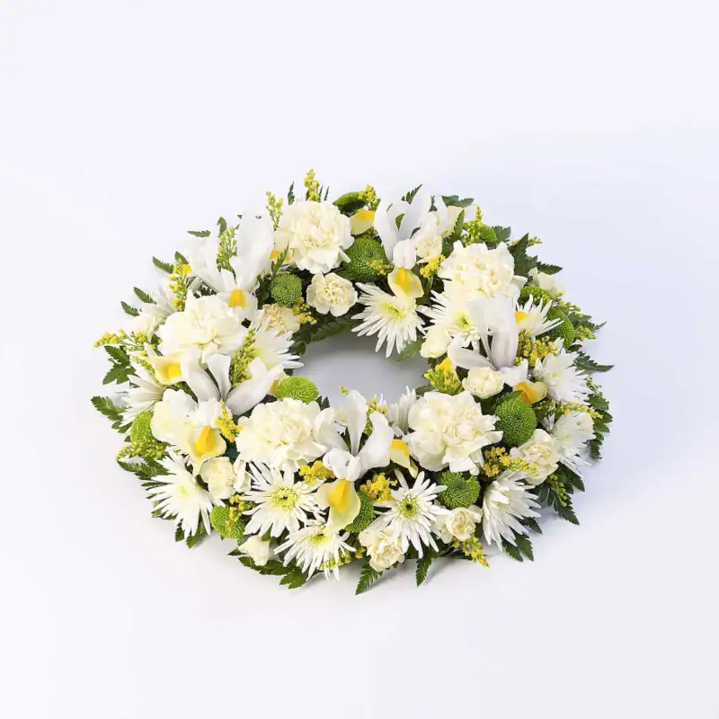 Leinapärg alusel lilli täis valged, rohelised, kollased toonid. Läbimõõt u 50 cm