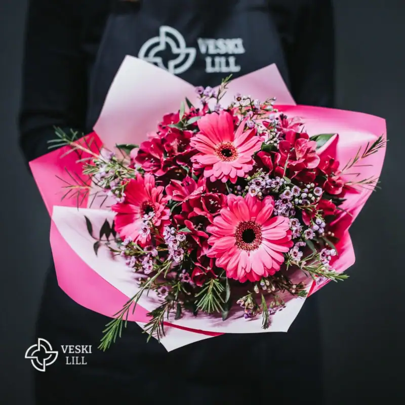 Särav lillekimp, mille ümber sobilik dekoratiivpaber. Kimp, mis toob igasse päeva rõõmsaid värve.